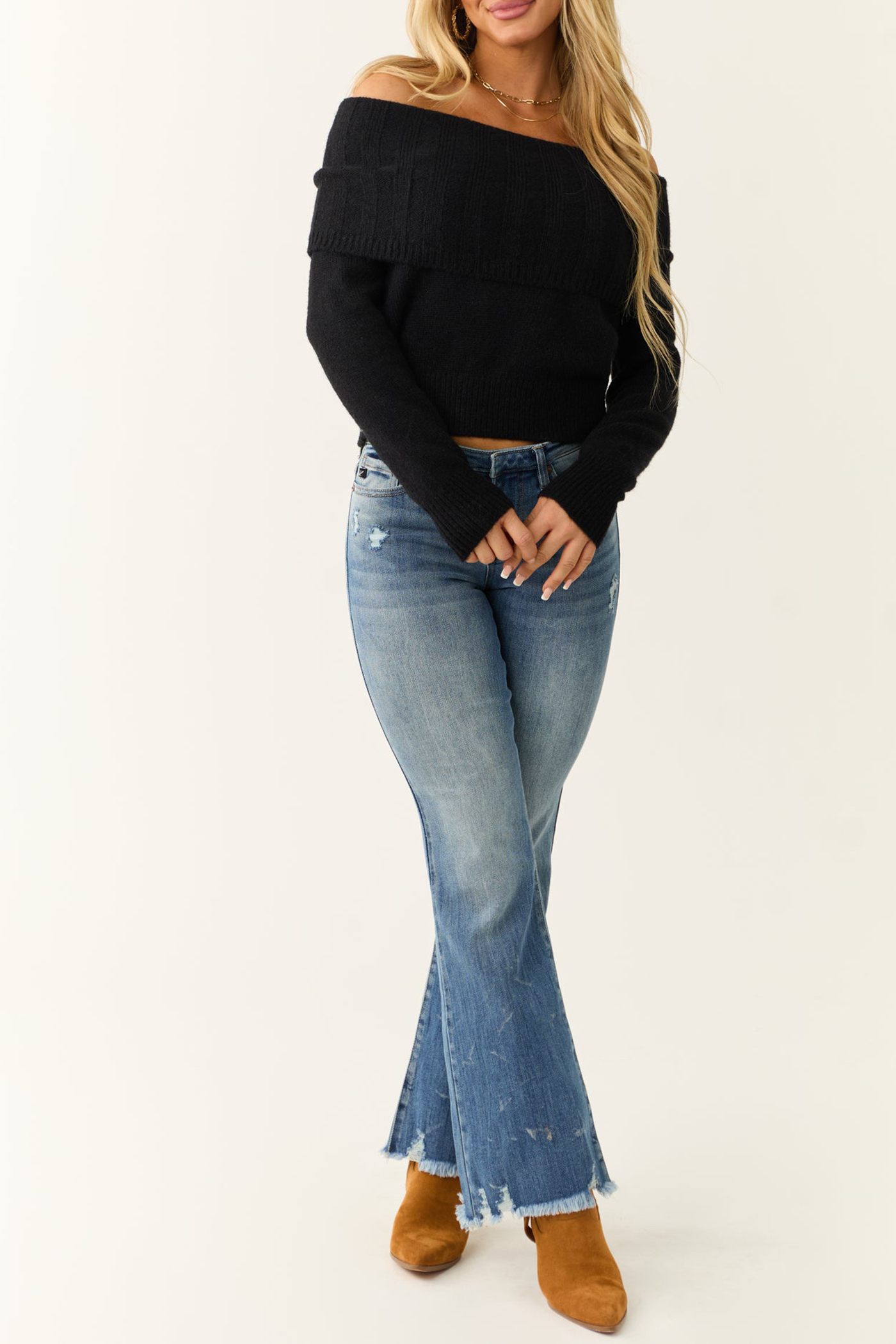 Black Soft Off Shoulder Neckline Sweater 52388007
