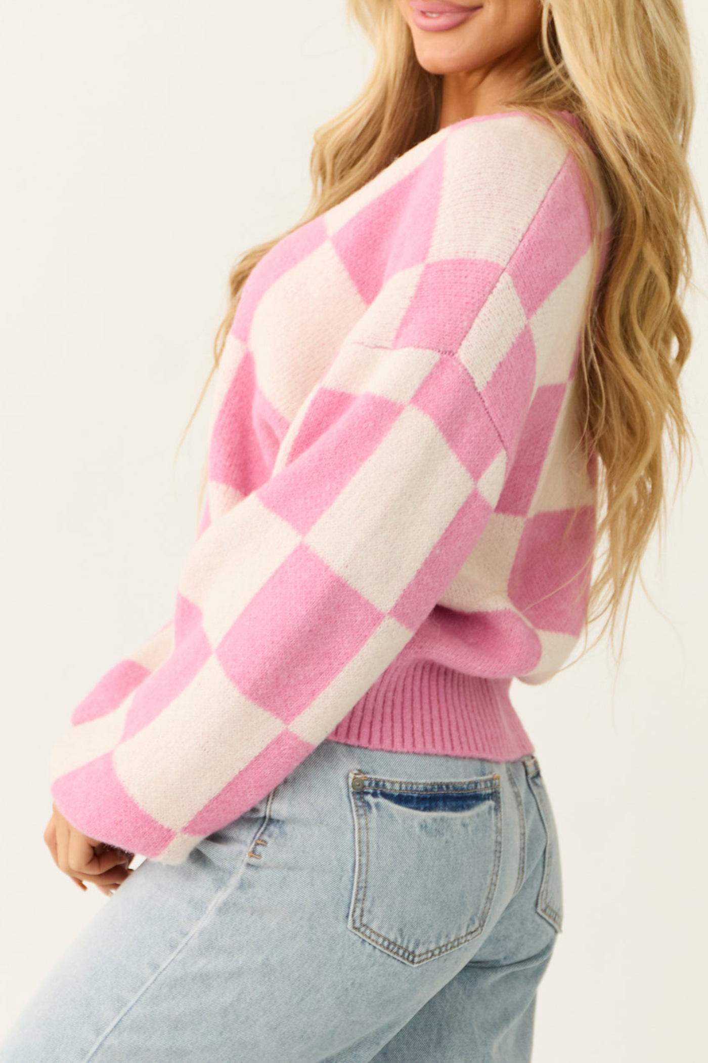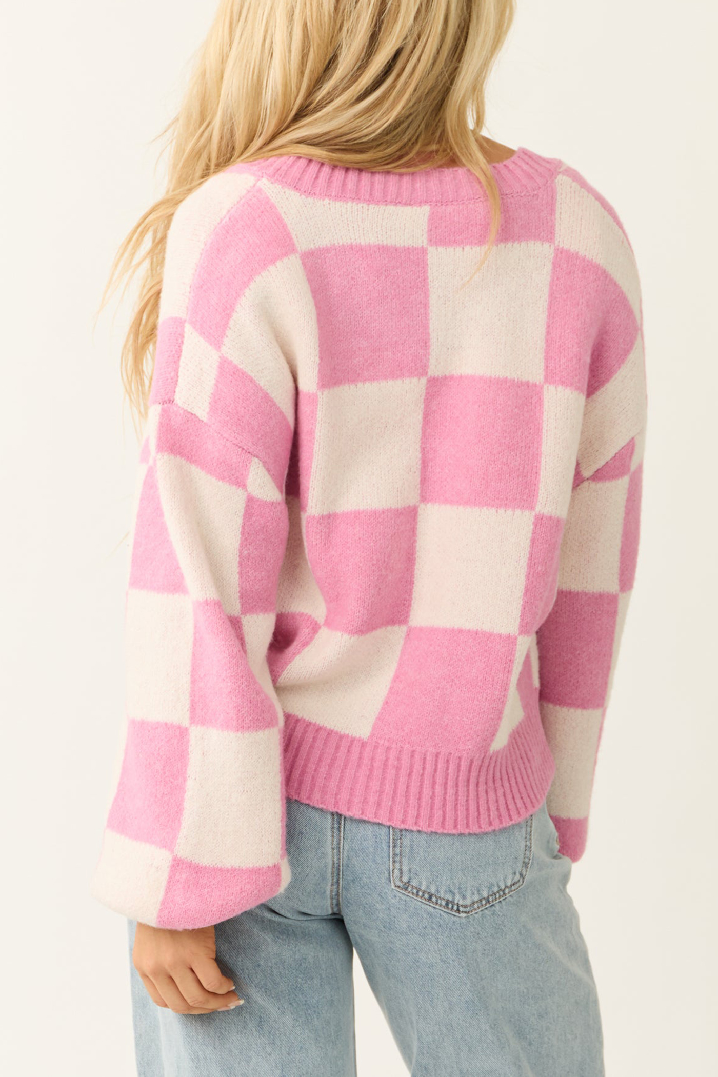 Bubblegum and Cream Checkered Print Cardigan 52382629