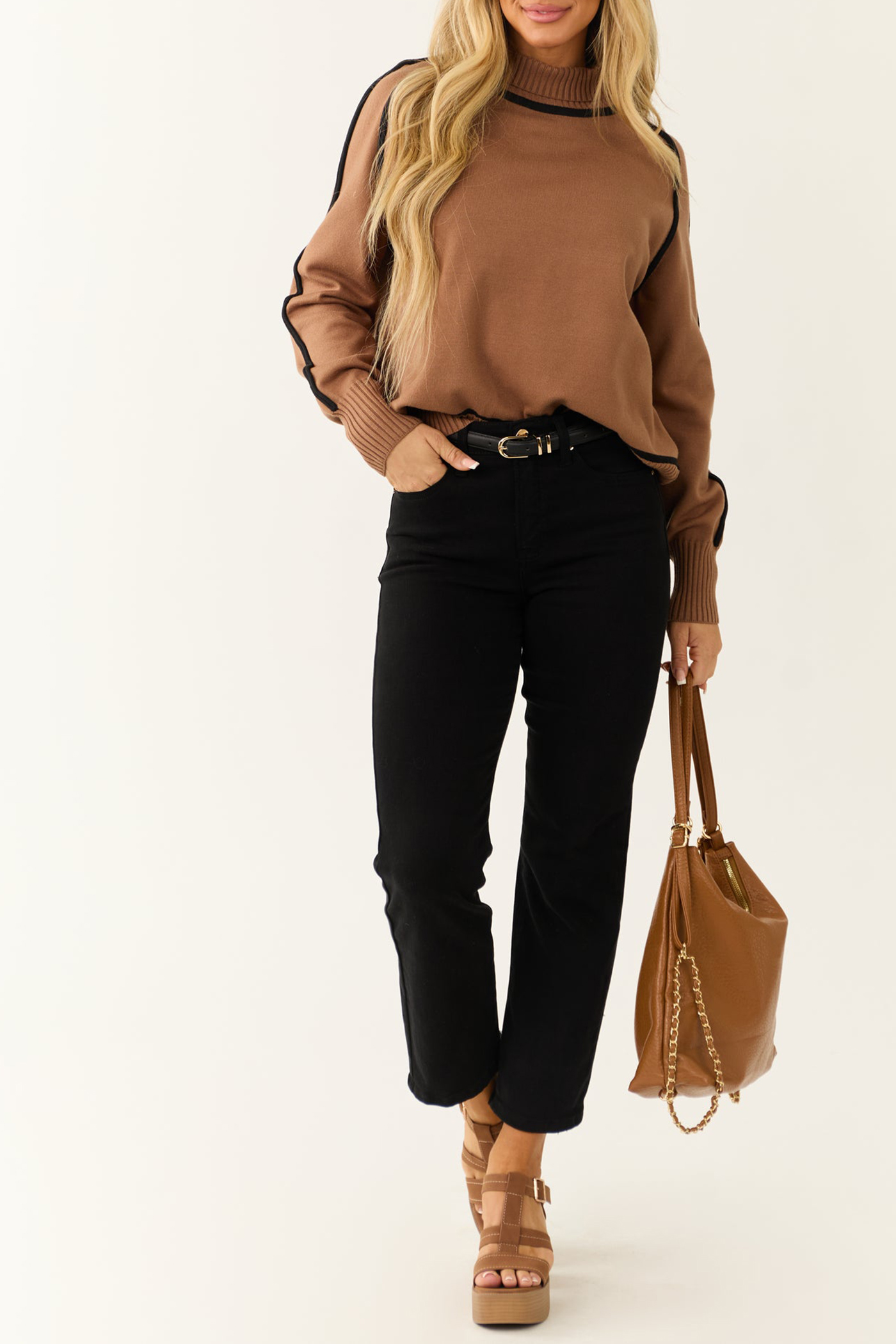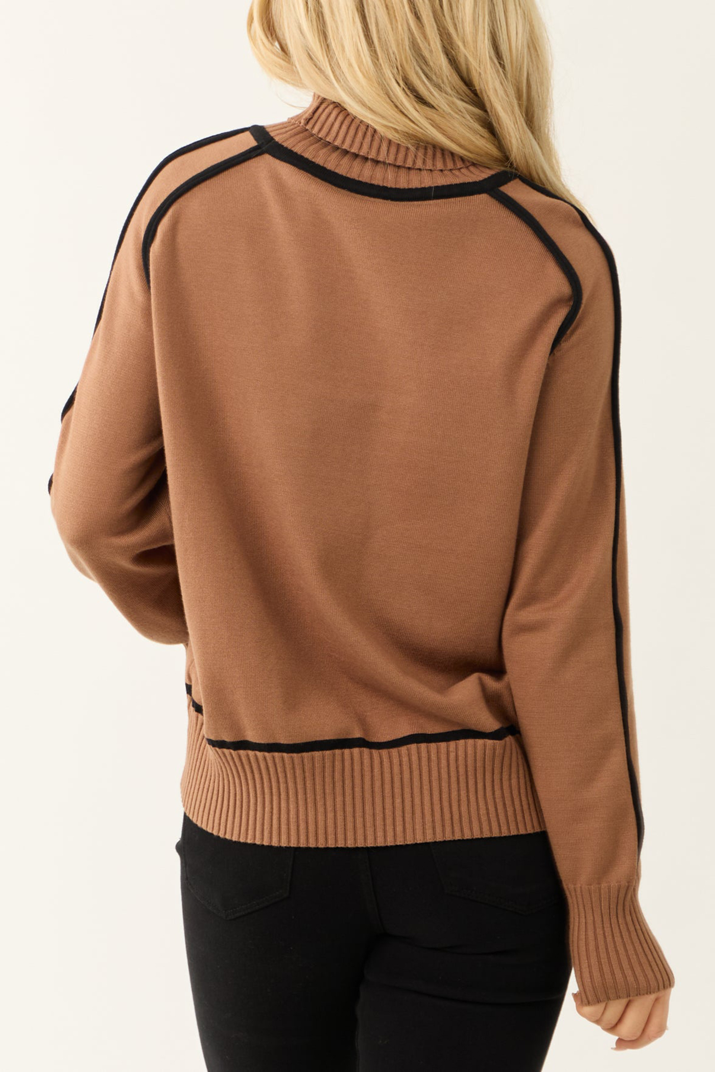 Cognac Contrast Trim Turtleneck Sweater 52388020