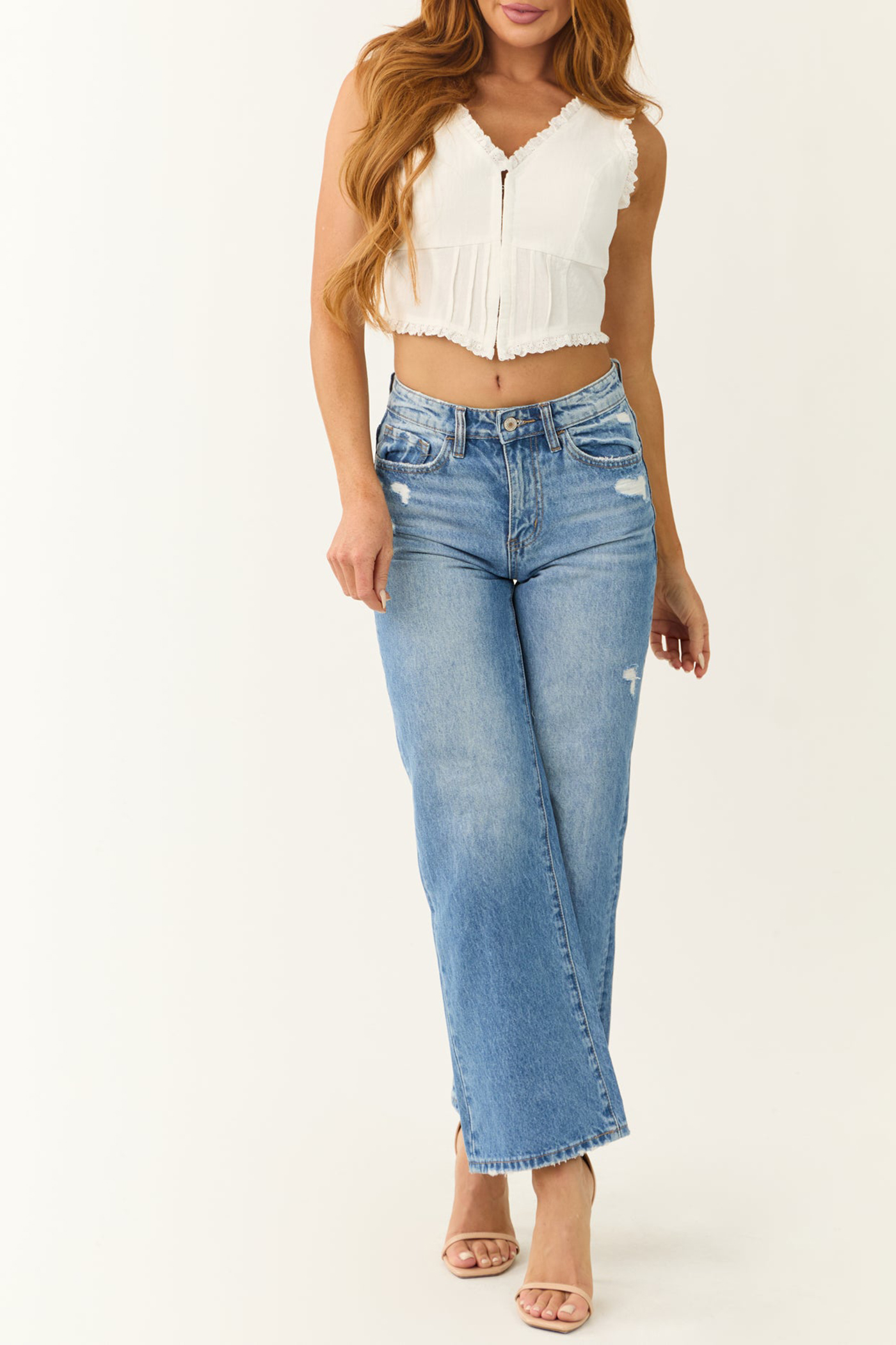 Ivory Corset Style Sleeveless Crop Top 52382403