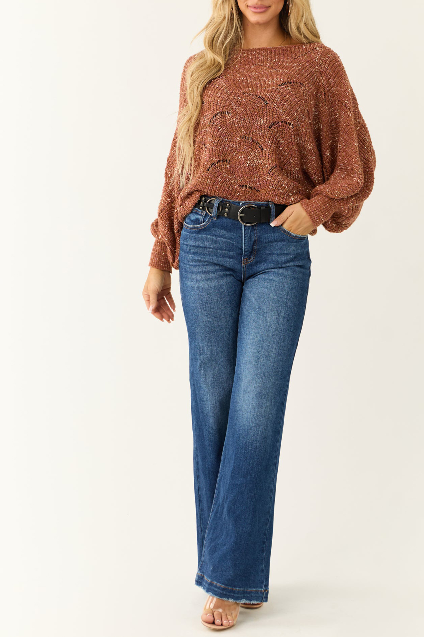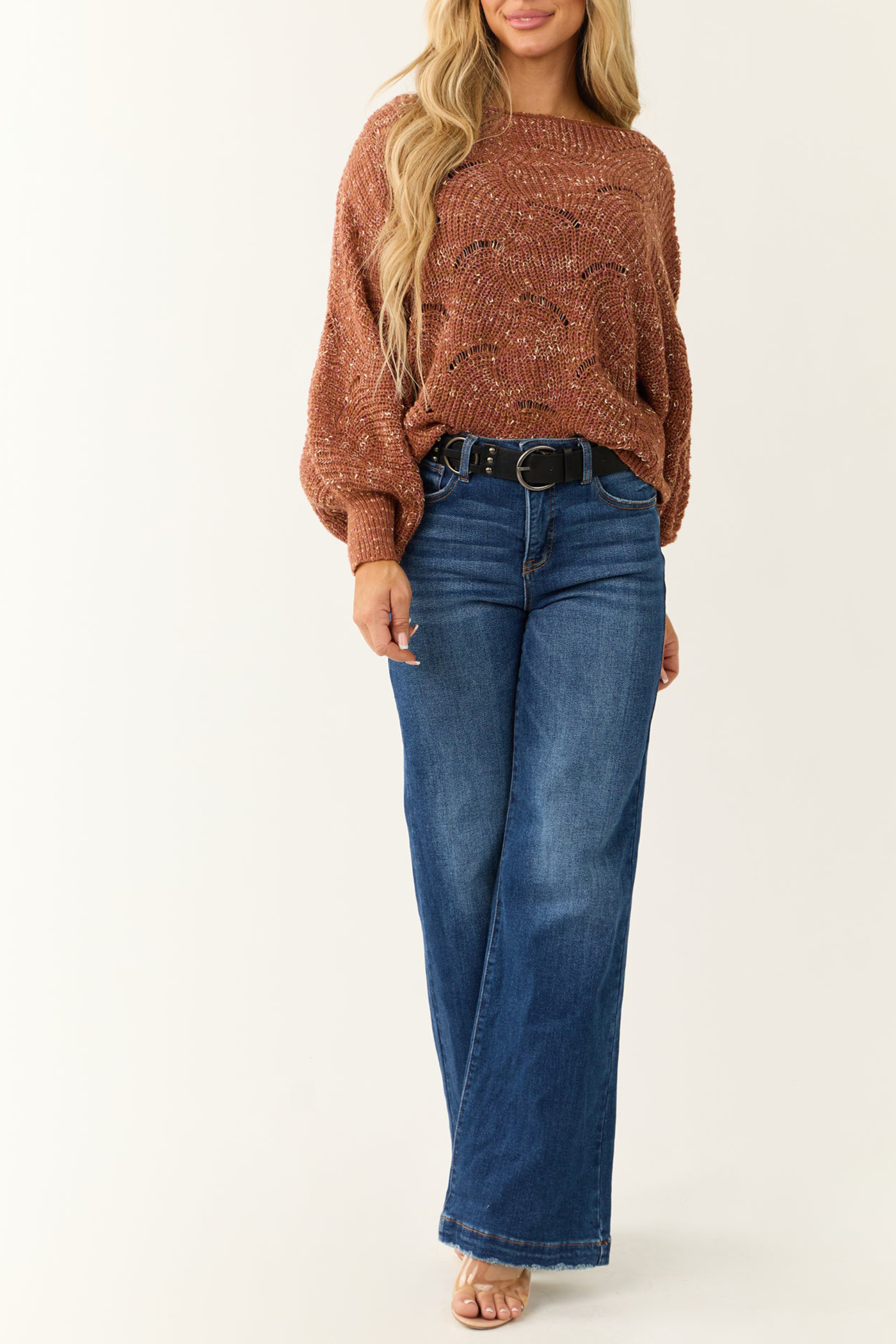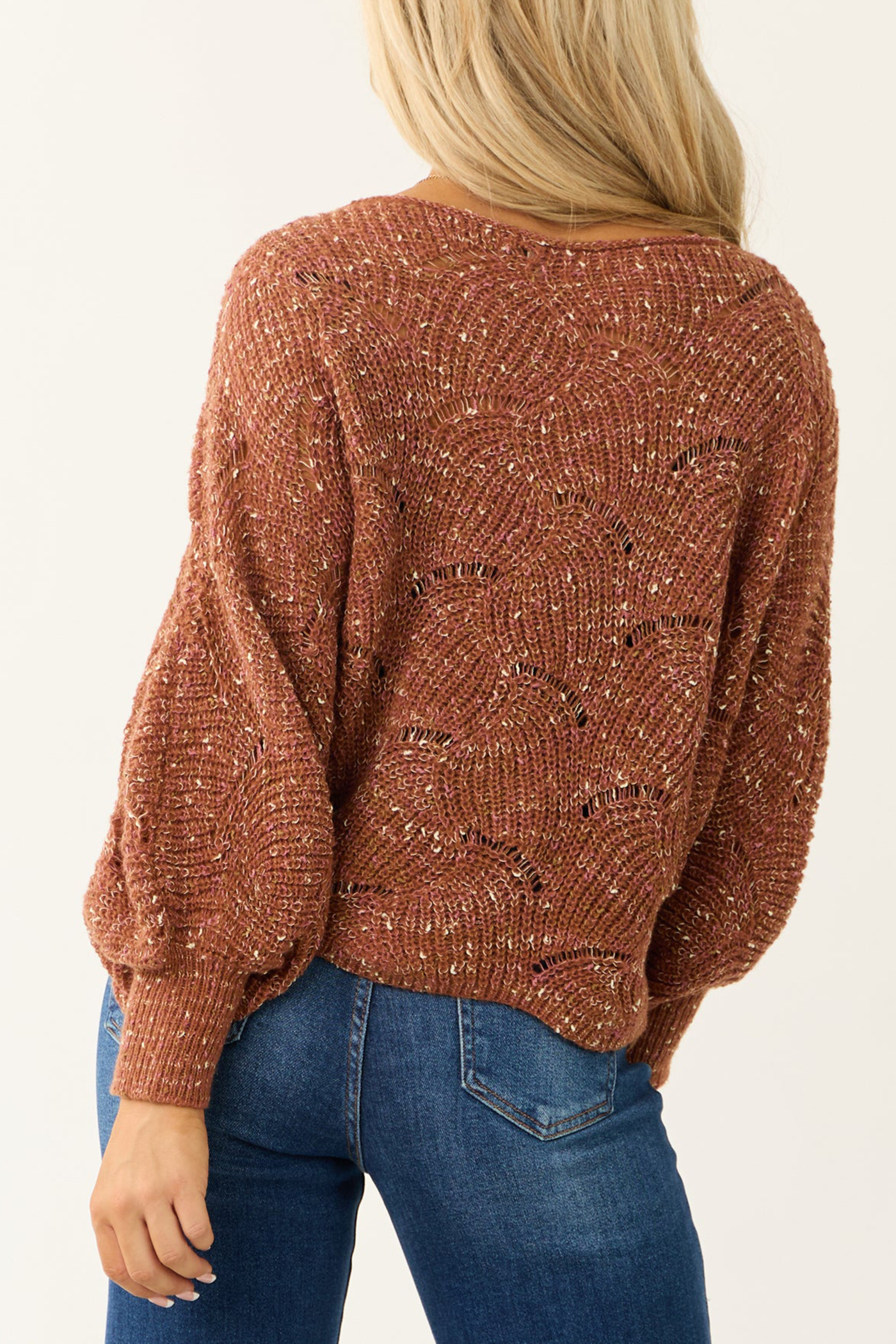 Terracotta Pointelle Long Balloon Sleeve Sweater 52388355